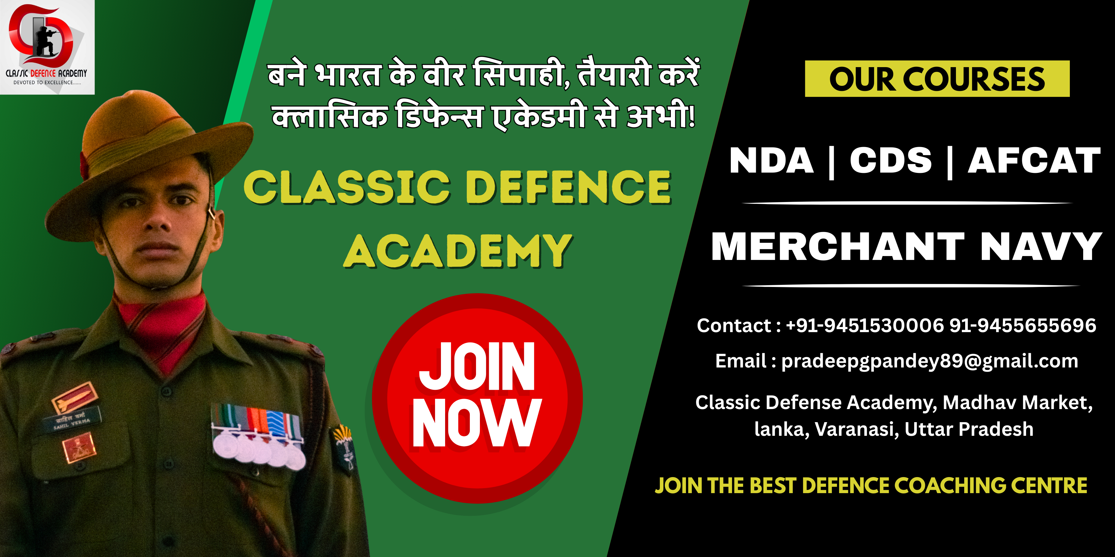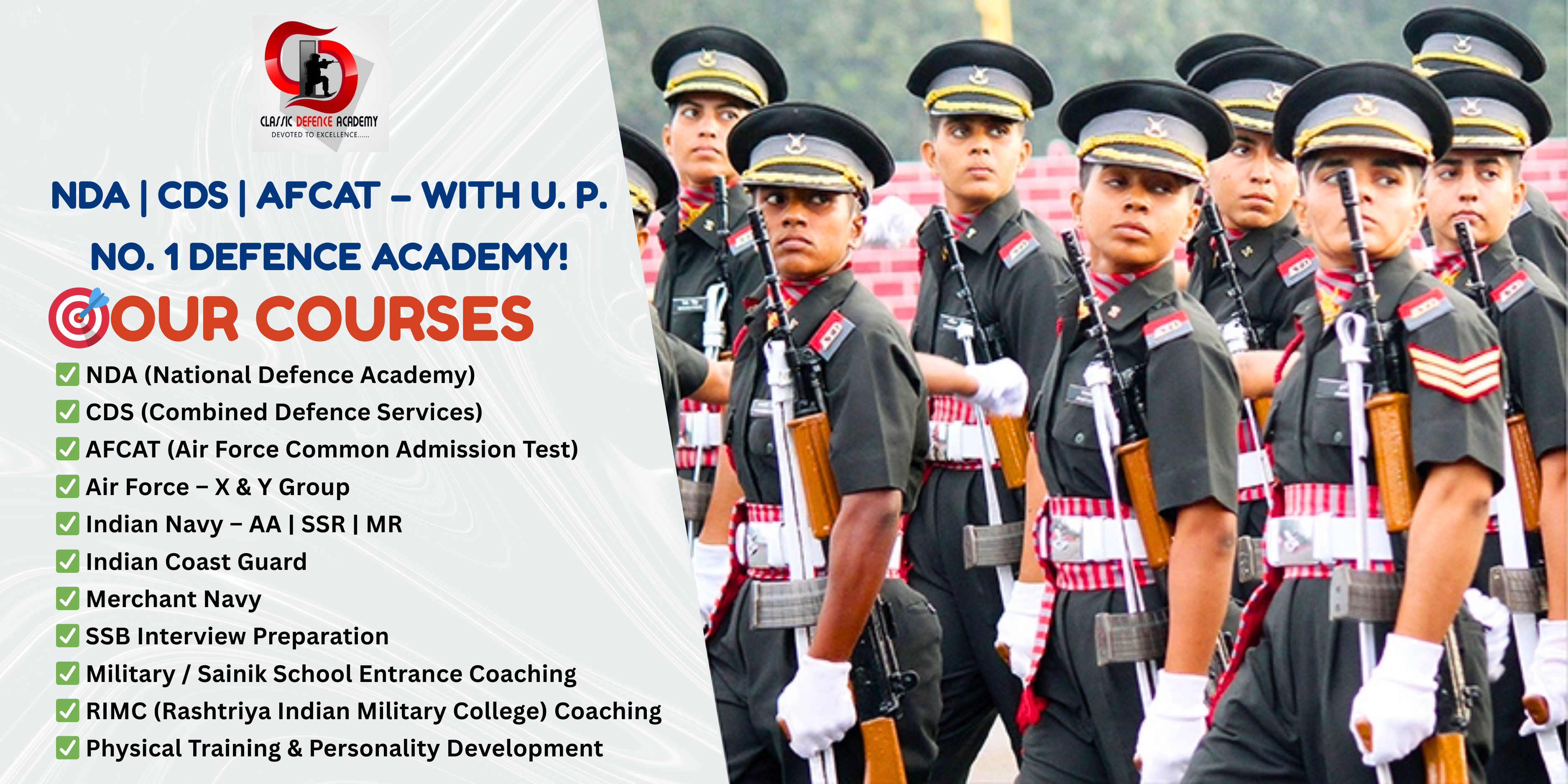 The institute offers instruction in NDA/CDS/AFCAT/Air Force (X&Y GROUP)/Navy (AA,SSR MR)/Coastguard. Classic Defence Academy works with all of the main schools and educational institutes in the Varanasi region to provide Defence Career Counselling and Preparation services.
